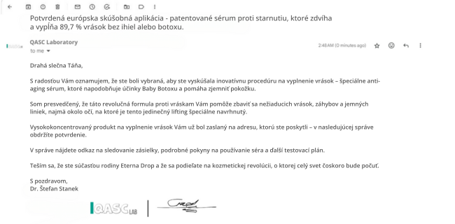 „Sérum Eterna Drop Botox urobilo moju pleť hodvábne hladkou, napnutou a pevnou za 2 týždne.“