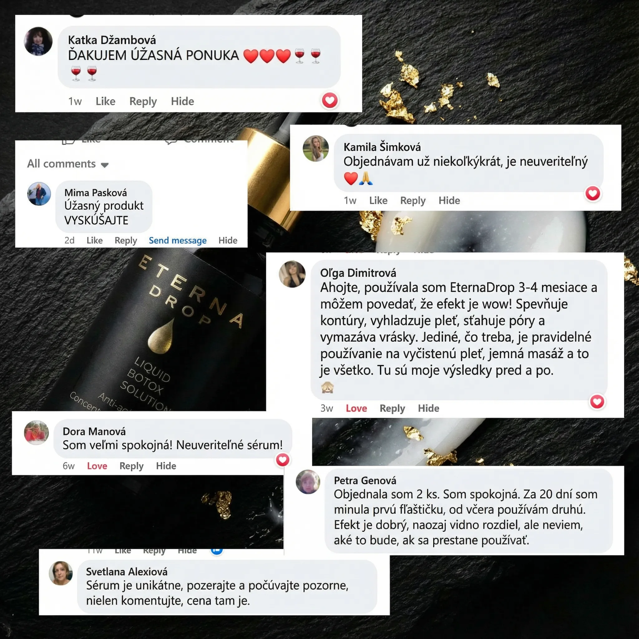 @Lýdia Martinková áno!! Chodila som na injekcie do čela, ale minulý rok som prestala... používam eternadrop 2 mesiace a úprimne je to ešte lepšie... vyzerám teraz prirodzenejšie ❤️